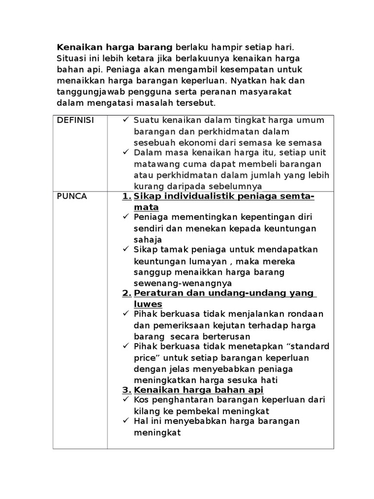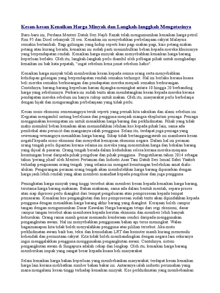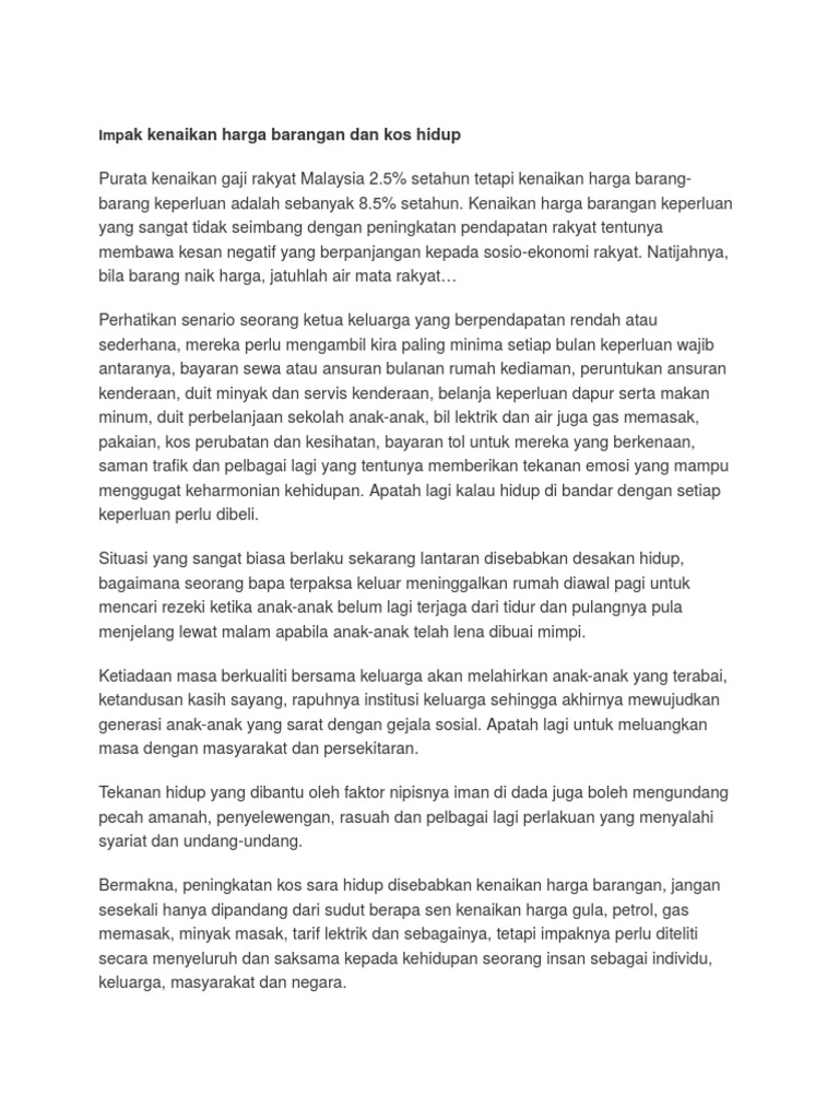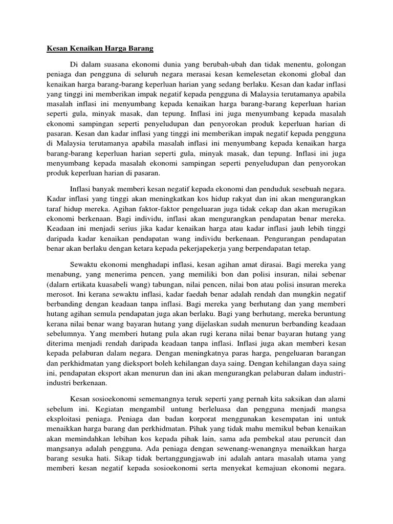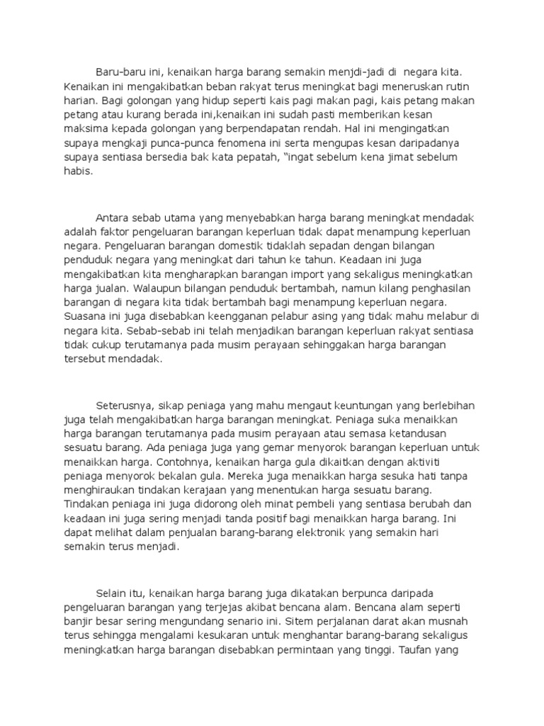 Karangan Punca Dan Kesan Kenaikan Harga Barang Pdf